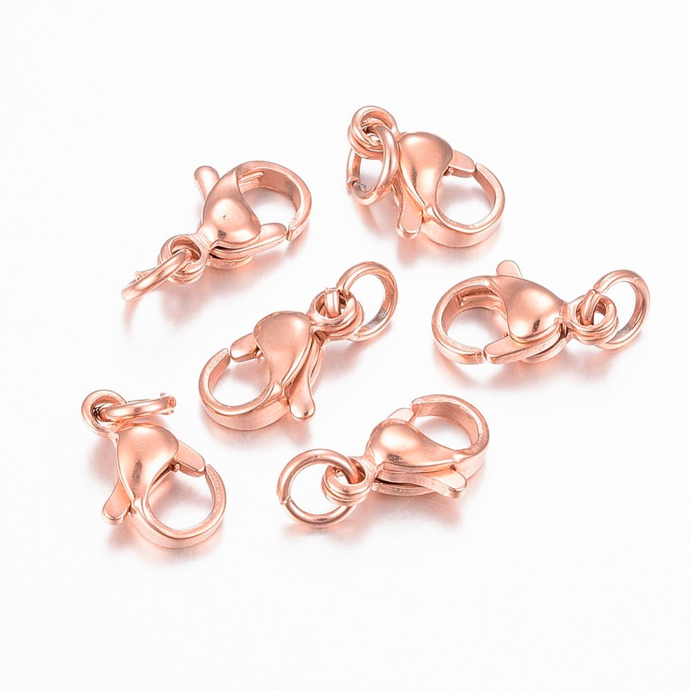 ピンクゴールドのブレスレットやピンクゴールドのネックレスの補修やカスタムメイドに使えるステンレス製のアクセサリーパーツ。
