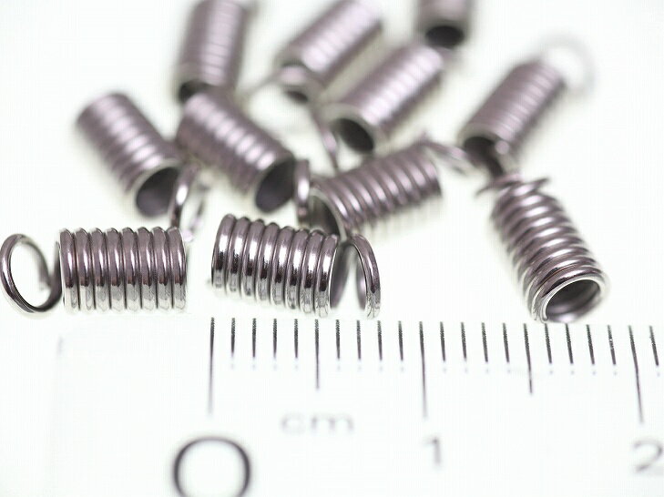 【コイルオコシ(約10mm)約10個】シルバー 紐留め金具 エンドキャップ カツラ エンドパーツ ビーズ手芸 レザークラフト 材料 素材 副資材