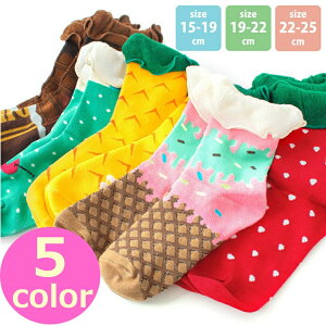 キッズソックス 靴下 クルー丈ソックス(15cm-19cm/19cm-23cm) フリル付きスイーツ柄 女児 キッズ ジュニア 通園 通学 女の子ソックス メール便対応 4774187-1615-8021