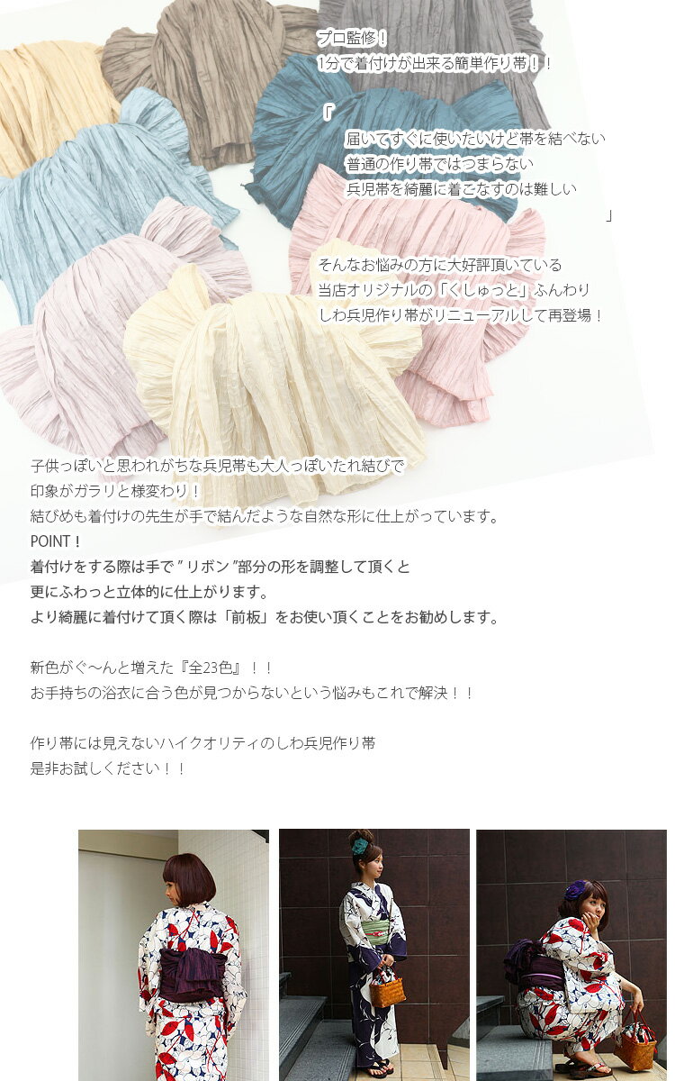 選べる8色 ここでしか買えない作り帯【utatane 差すだけ1分!プロ監修 しわ たれ結び 兵児つくり帯】不器用さんでも簡単 ワンタッチで憧れモデル着付け帯アレンジ完成♪ しわ兵児帯 作り帯 つけ帯 造り帯 浴衣用帯